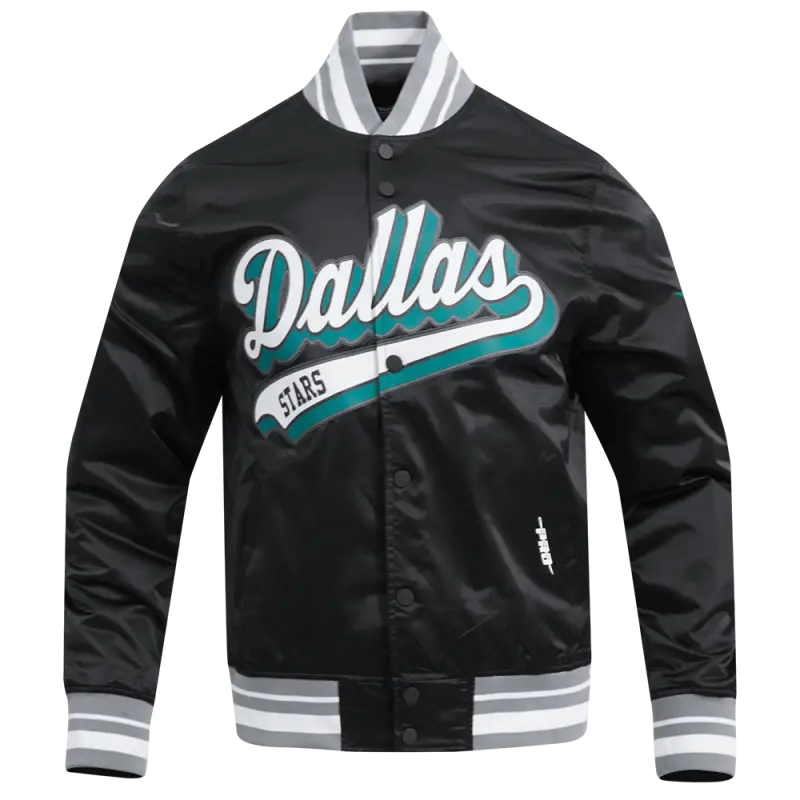 NHL DALLAS STARS SCRIPT TAIL MEN’S SATIN JACKET (BLACK\/GRAY)