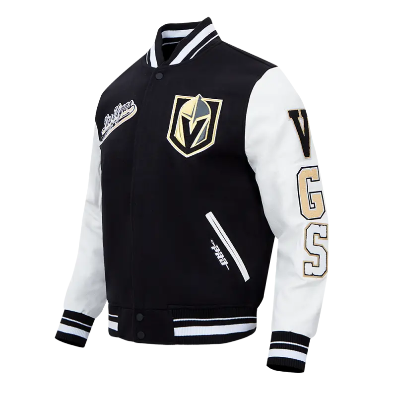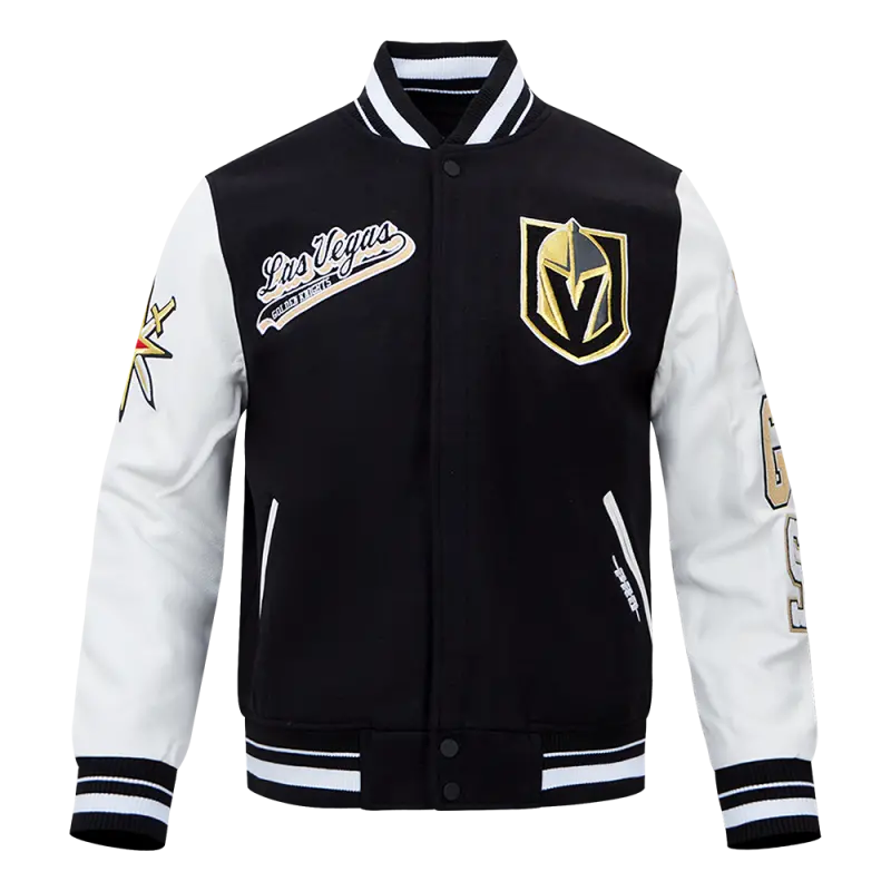 NHL VEGAS GOLDEN KNIGHTS RETRO CLASSIC MEN’S RIB WOOL VARSITY JACKET (BLACK\/WHITE)