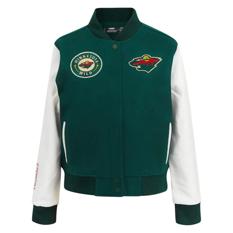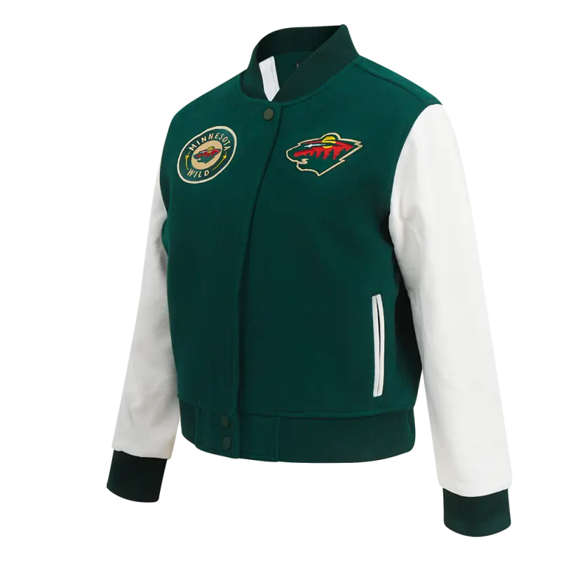 NHL MINNESOTA WILD CLASSIC WOMEN’S WOOL VARSITY JACKET (FOREST GREEN\/WHITE)