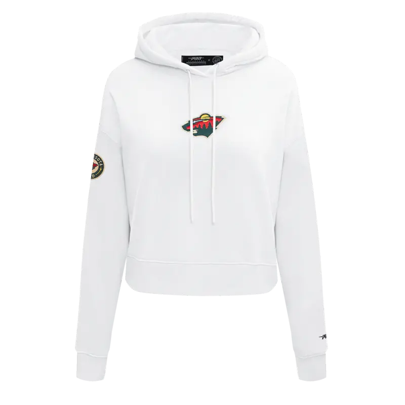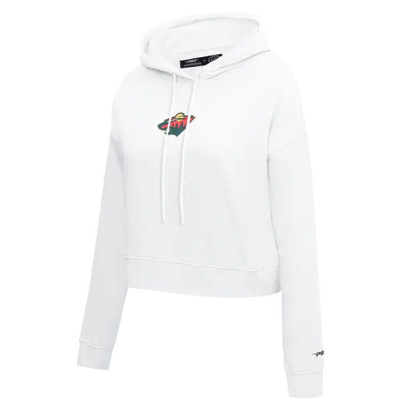 NHL MINNESOTA WILD CLASSIC WOMEN’S CROPPED FLEECE PULLOVER HOODIE (WHITE)