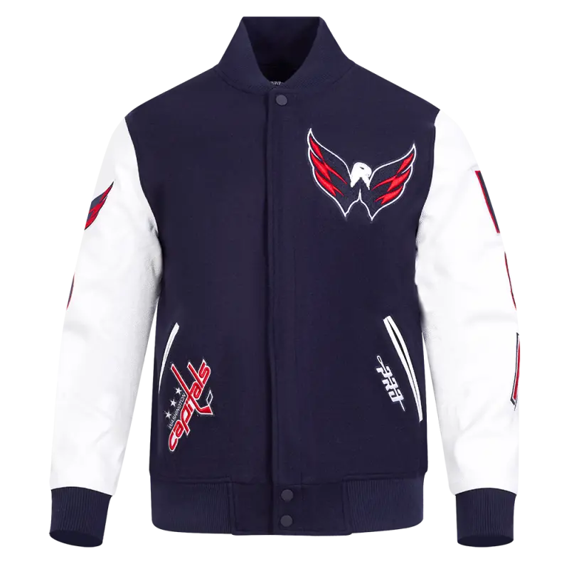 NHL WASHINGTON CAPITALS CLASSIC MEN’S WOOL VARSITY JACKET (MIDNIGHT NAVY\/WHITE)