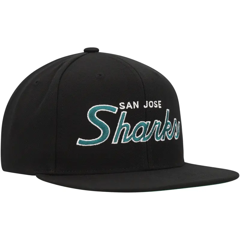 • Showcase your unwavering San Jose Sharks pride each time you put on this Core Team Script 2.0 cap. Meticulously constructed by Mitchell & Ness, this hat features classic San Jose Sharks graphics embroidered across the crown. The snapback closure will ensure a perfect fit each time you throw it on.
