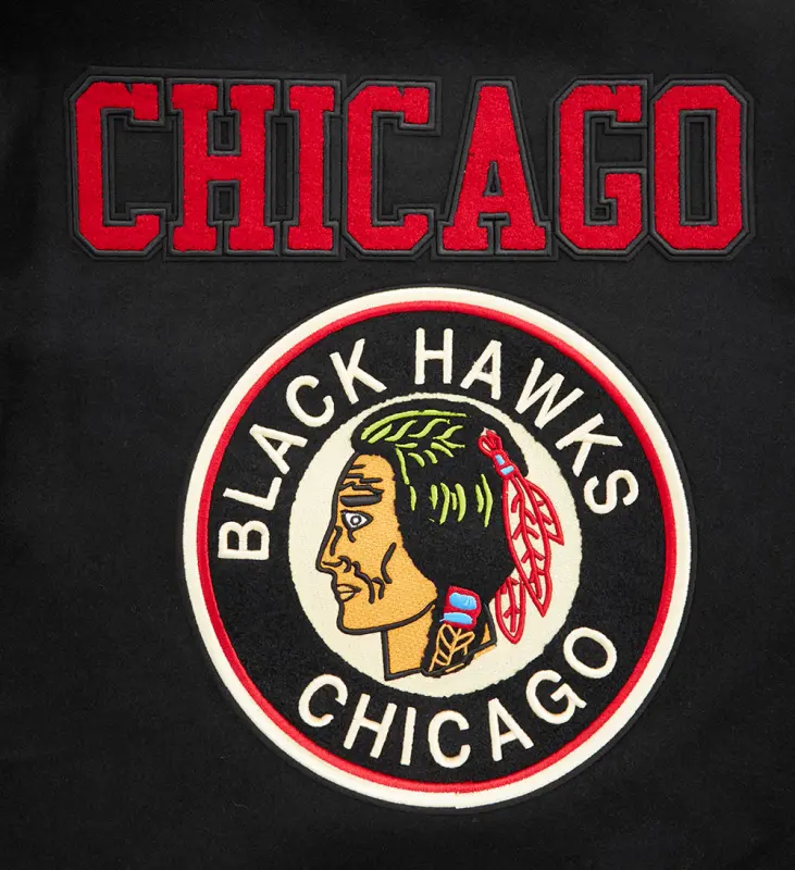 NHL CHICAGO BLACKHAWKS RETRO CLASSIC MEN’S RIB WOOL VARSITY JACKET (BLACK\/RED\/BLACK)