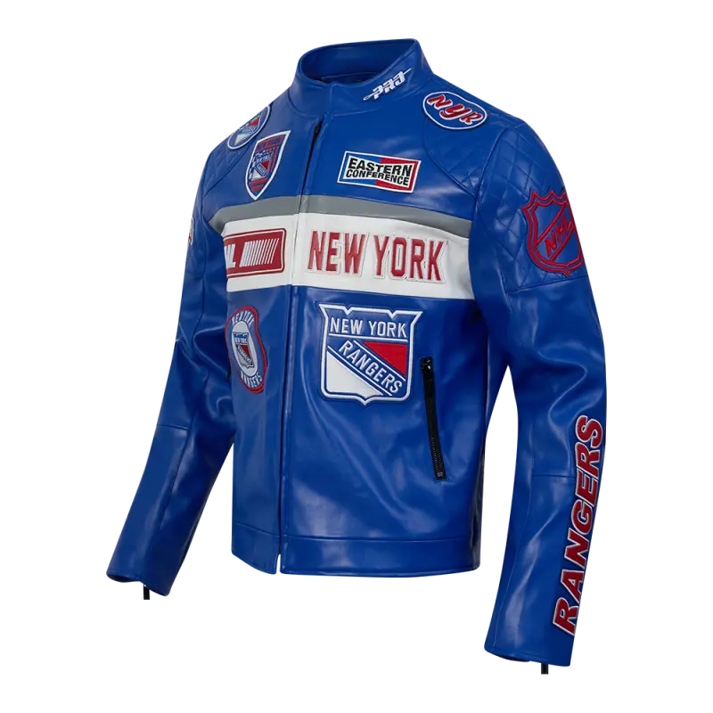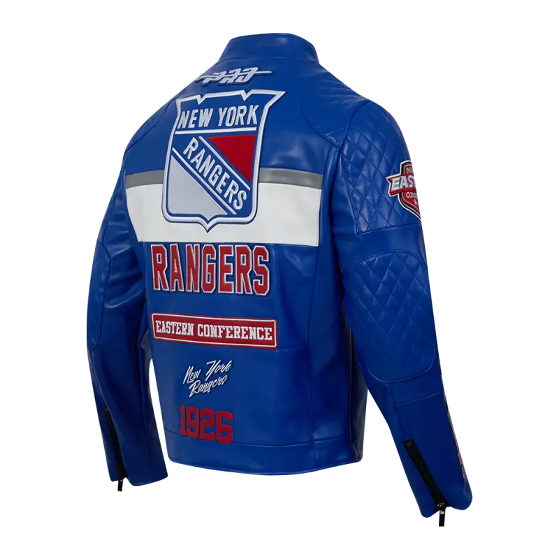 NHL NEW YORK RANGERS MEN’S MOTO JACKET (ROYAL BLUE\/WHITE)