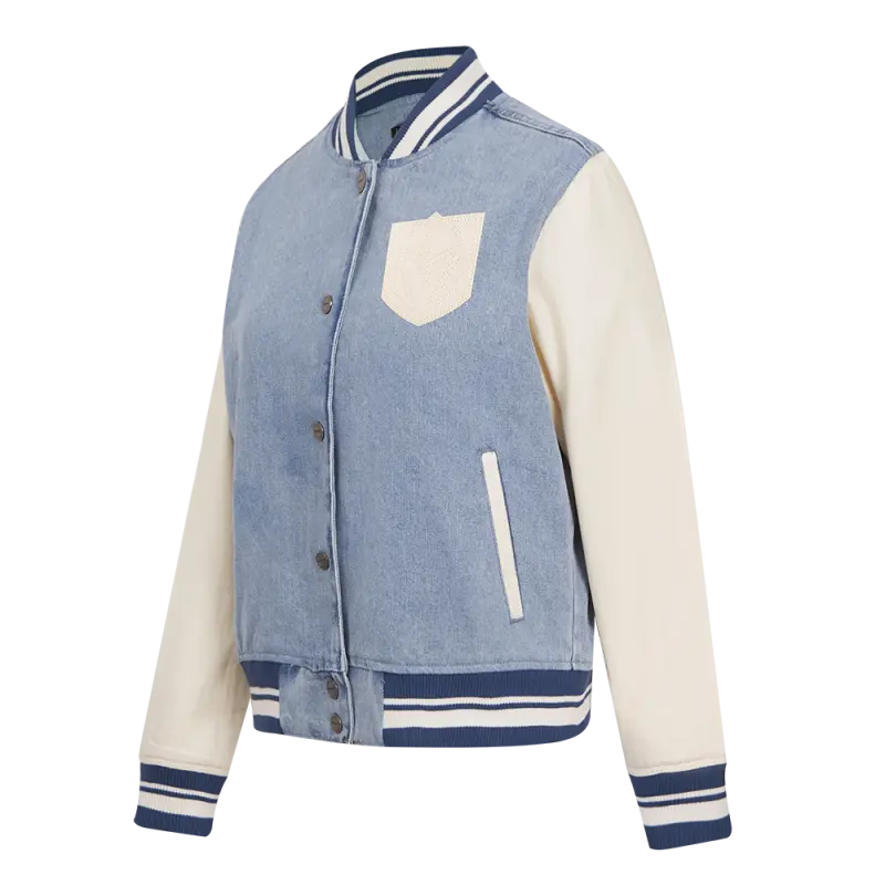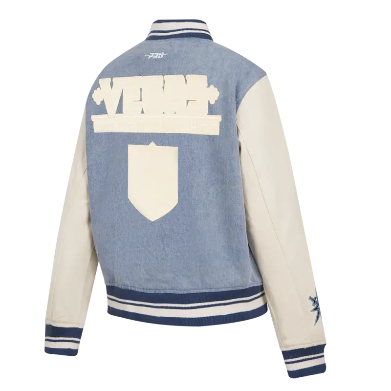 NHL VEGAS GOLDEN KNIGHTS VARSITY BLUES WOMEN’S W DENIM VARSITY JACKET (DENIM\/LINEN)